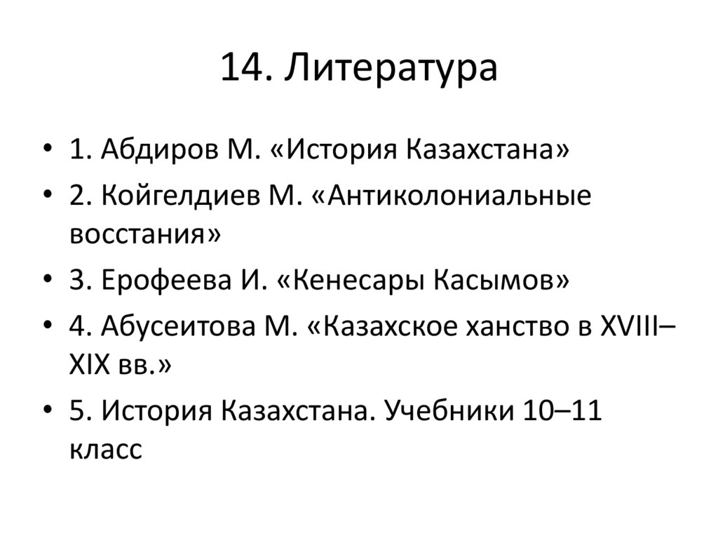 14. Литература• 1. Абдиров М. «История Казахстана»