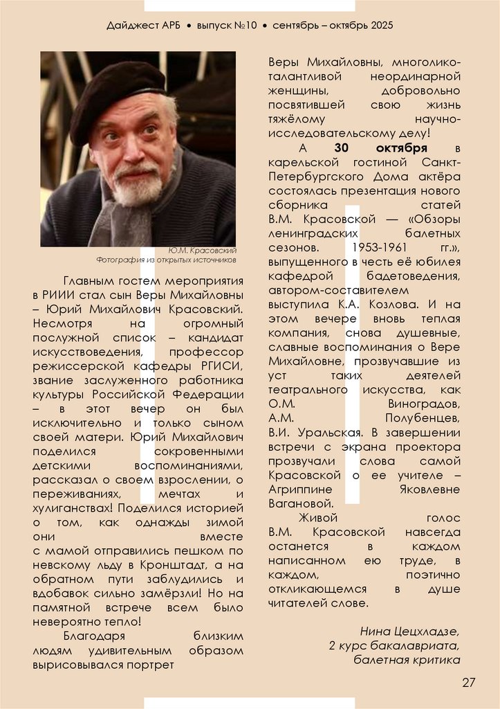 Дайджест АРБ выпуск №10 сентябрь – октябрь 2025В первый октябрьский день, когда Петербург готовился облачиться