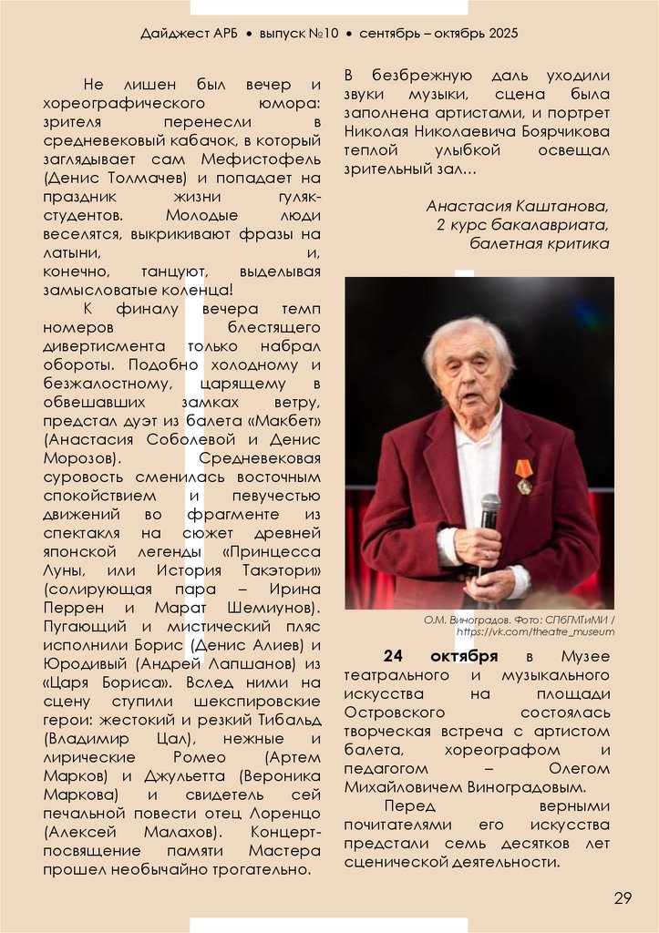 Санкт-Петербург, ул. Зодчего Росси, 2 8 (812) 456-07-65 Vaganovaacademy.ru