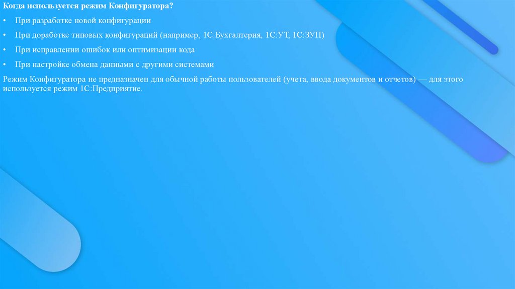 Когда используется режим Конфигуратора?При разработке новой конфигурации