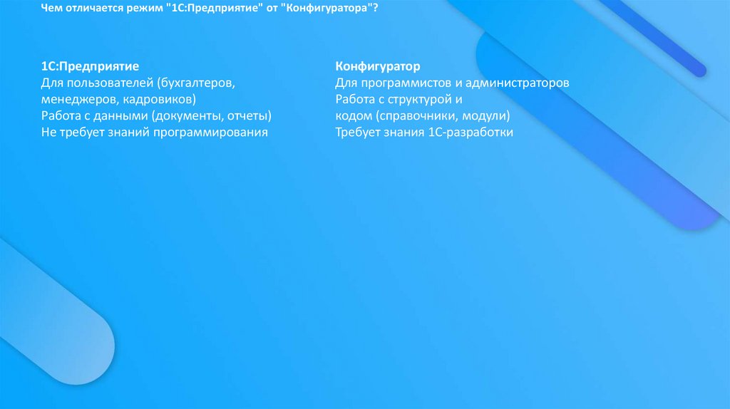 Чем отличается режим "1С:Предприятие" от "Конфигуратора"?1С:Предприятие