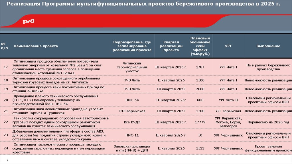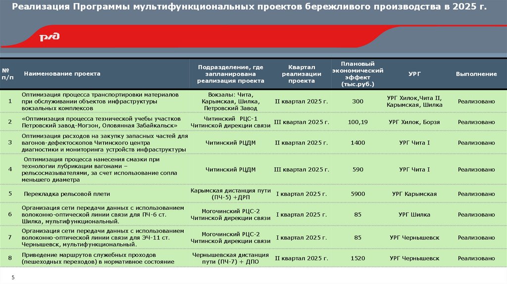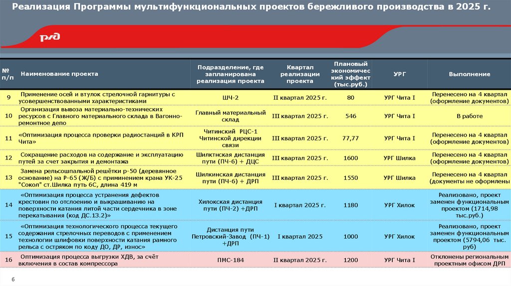 Реализация Программы мультифункциональных проектов бережливого производства в 2025 г.№