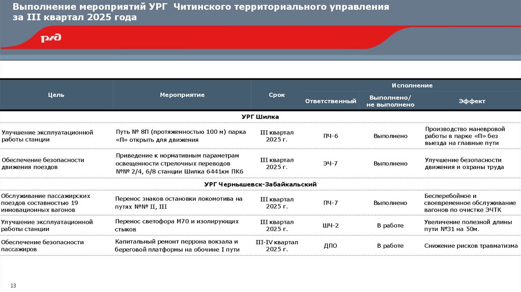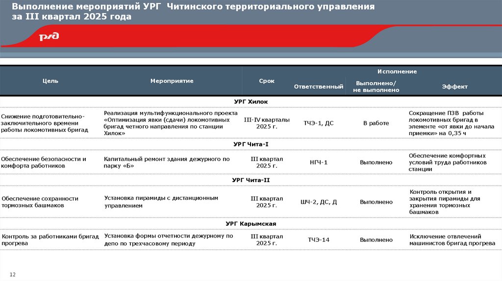 Выполнение мероприятий УРГ Читинского территориального управленияза III квартал 2025 года