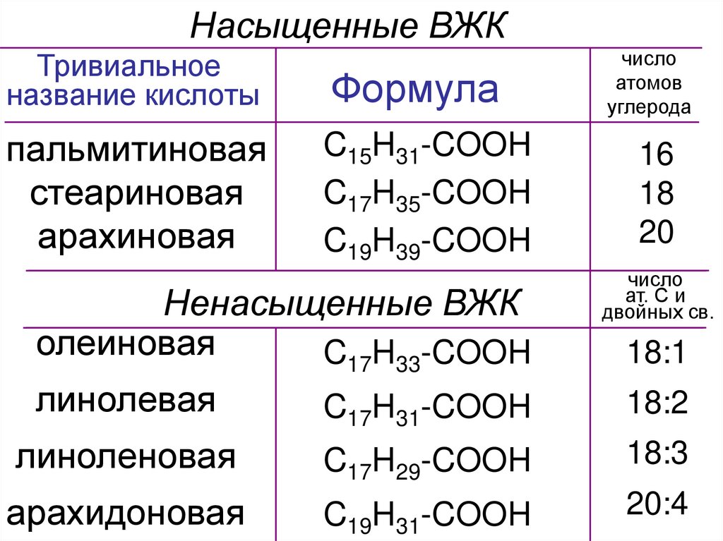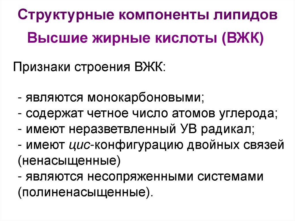 Структурные компоненты липидовВысшие жирные кислоты (ВЖК)