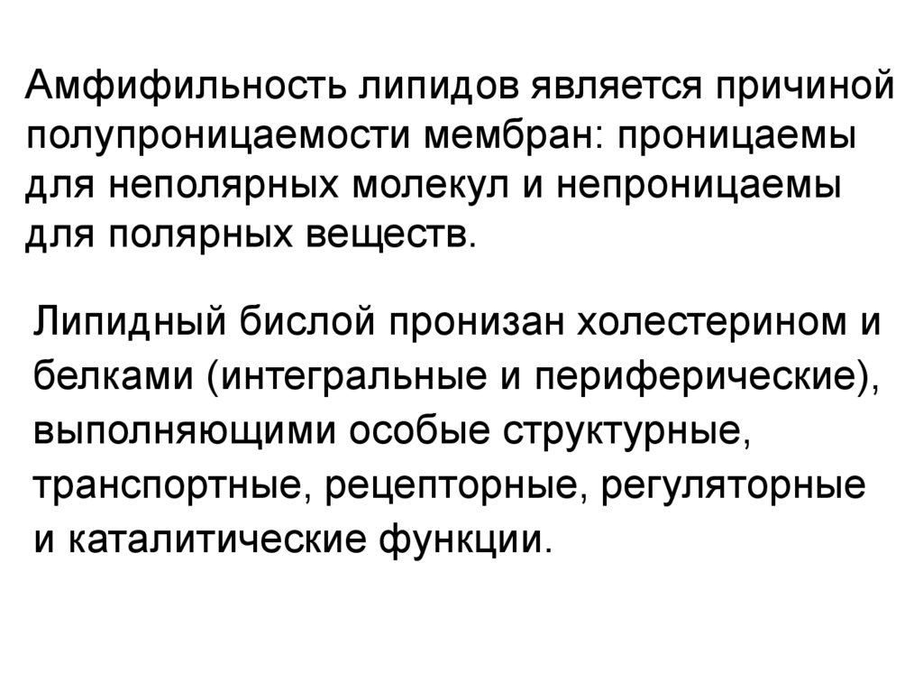 Амфифильность липидов является причинойполупроницаемости мембран: проницаемы