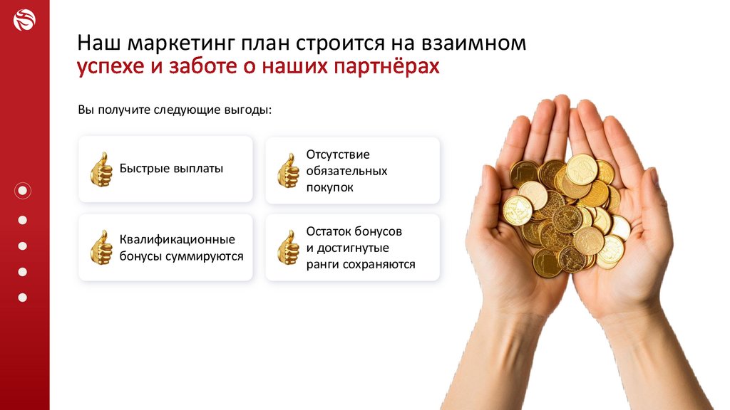 Наш маркетинг план строится на взаимномуспехе и заботе о наших партнёрах