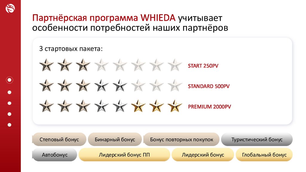 Партнёрская программа WHIEDA учитываетособенности потребностей наших партнёров