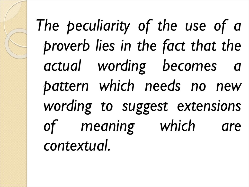 A proverb or a saying is a peculiarmode of utterance which is mainly