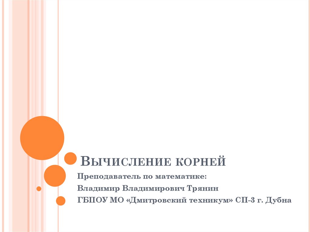 ВЫЧИСЛЕНИЕ КОРНЕЙПреподаватель по математике: