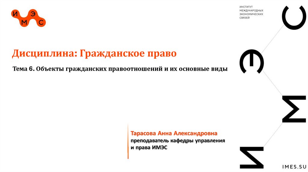 Дисциплина: Гражданское правоТема 6. Объекты гражданских правоотношений и их основные виды