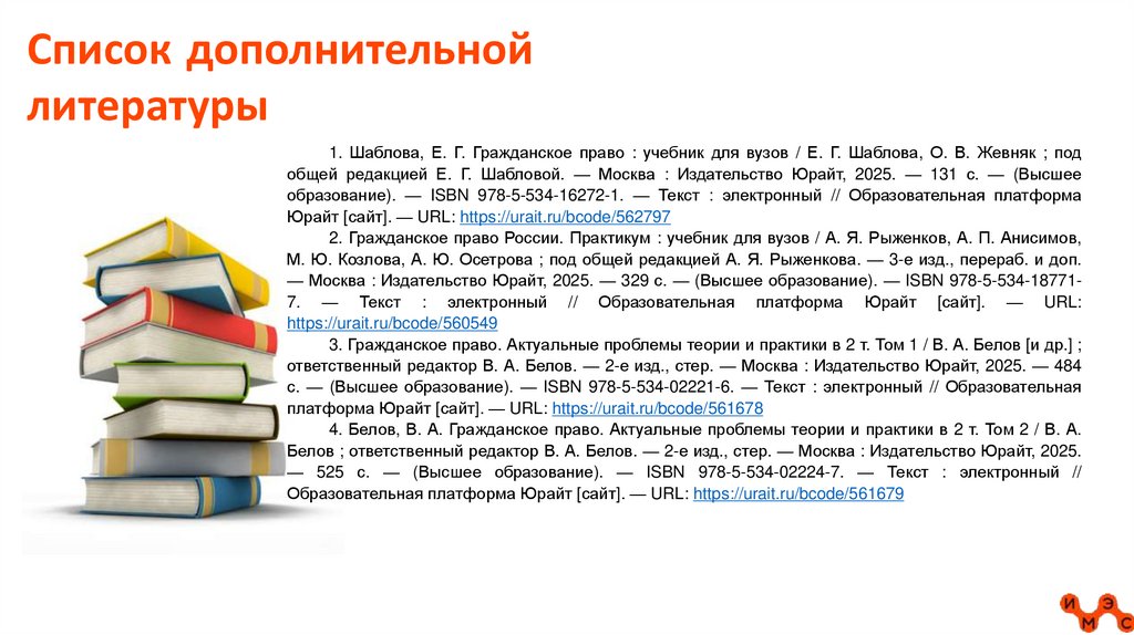 1. Шаблова, Е. Г. Гражданское право : учебник для вузов / Е. Г. Шаблова, О. В. Жевняк ; под