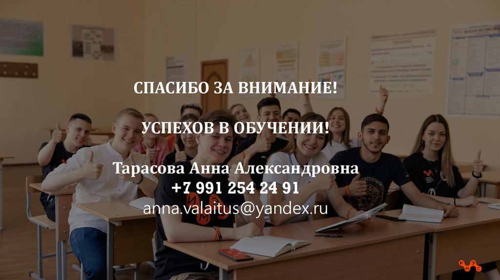 СПАСИБО ЗА ВНИМАНИЕ!УСПЕХОВ В ОБУЧЕНИИ!