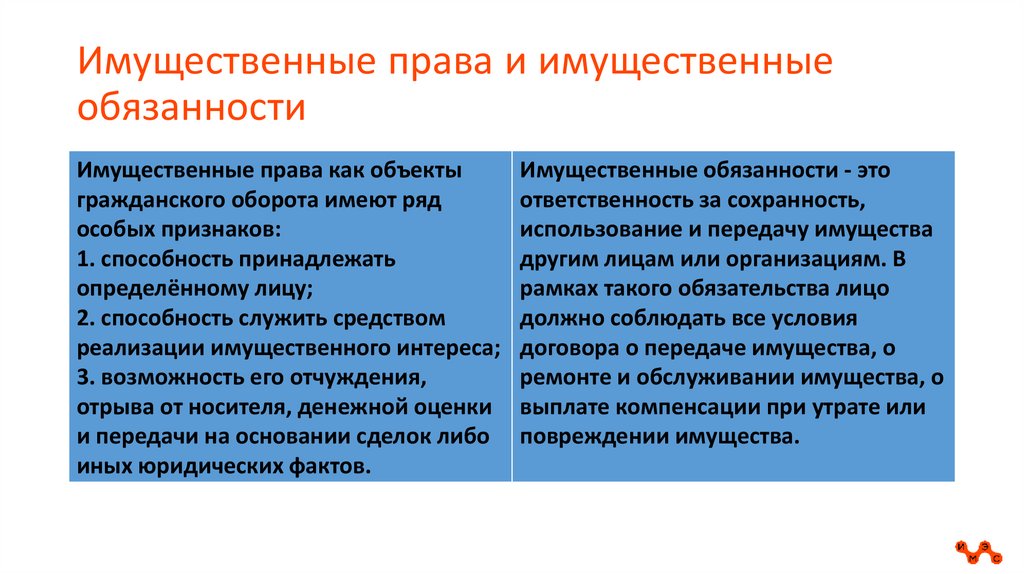 Имущественные права и имущественныеобязанности