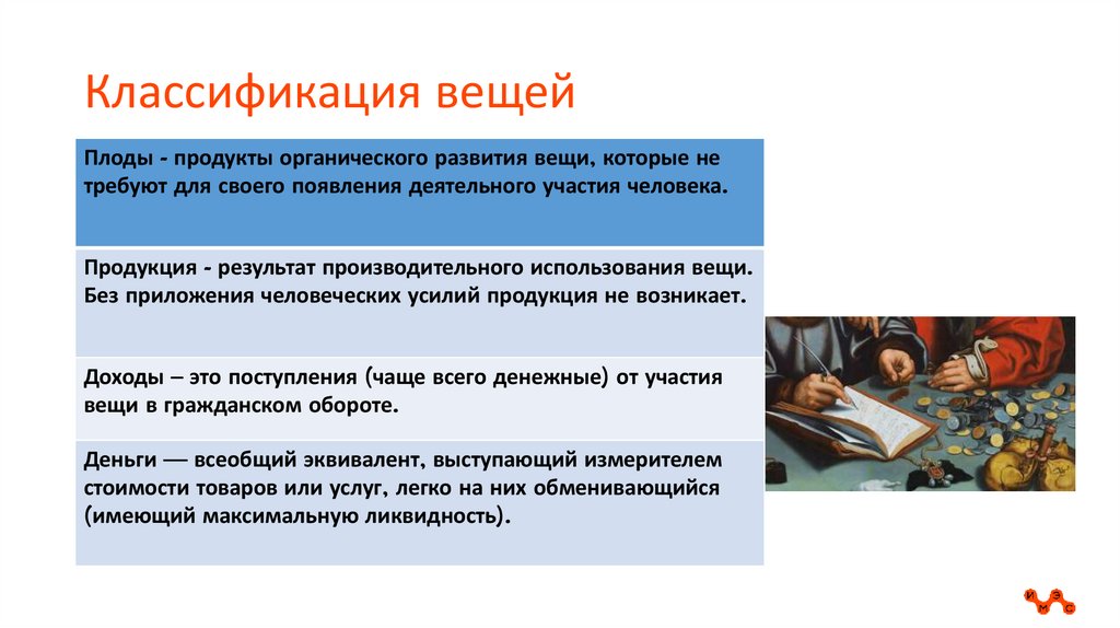 Классификация вещейПлоды - продукты органического развития вещи, которые не