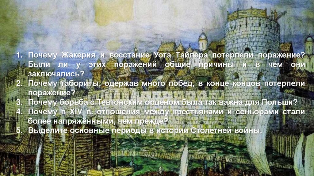 1. Почему Жакерия и восстание Уота Тайлера потерпели поражение?Были ли у этих поражений общие причины и в чём они