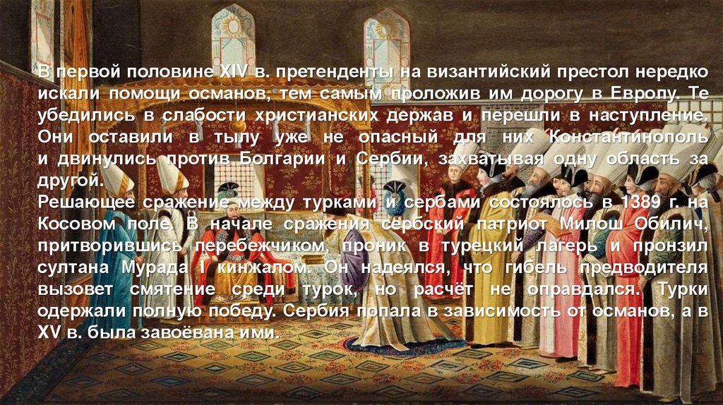 одержали полную победу. Сербия попала в зависимость от османов, а в