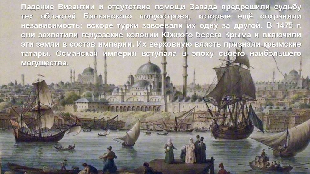 Падение Византии и отсутствие помощи Запада предрешили судьбутех областей Балканского полуострова, которые ещё сохраняли
