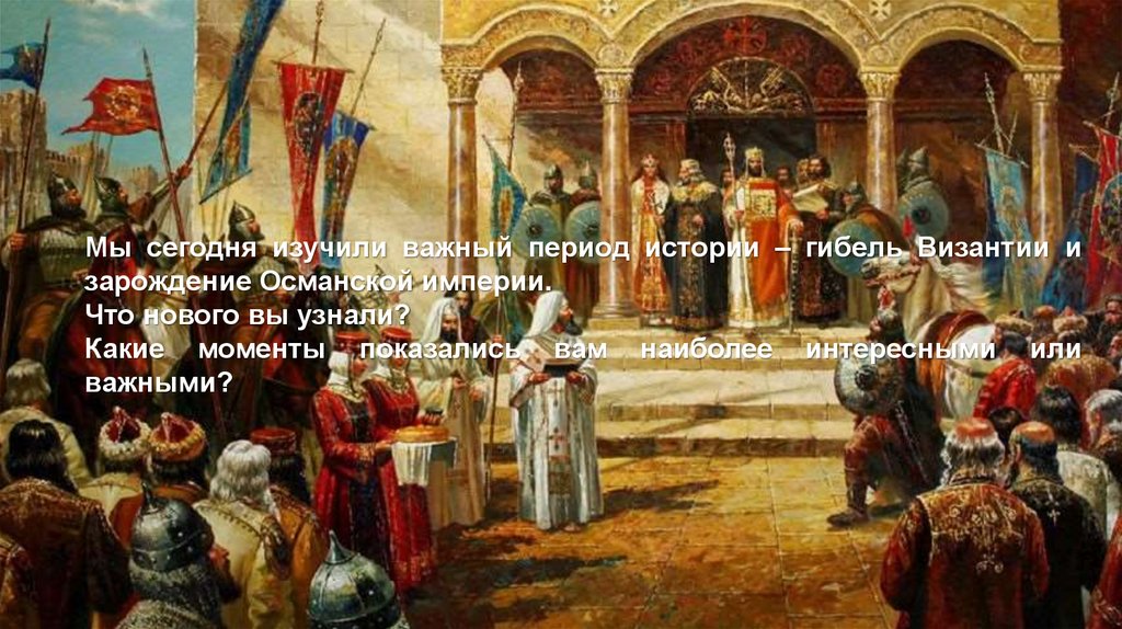 Мы сегодня изучили важный период истории – гибель Византии изарождение Османской империи.