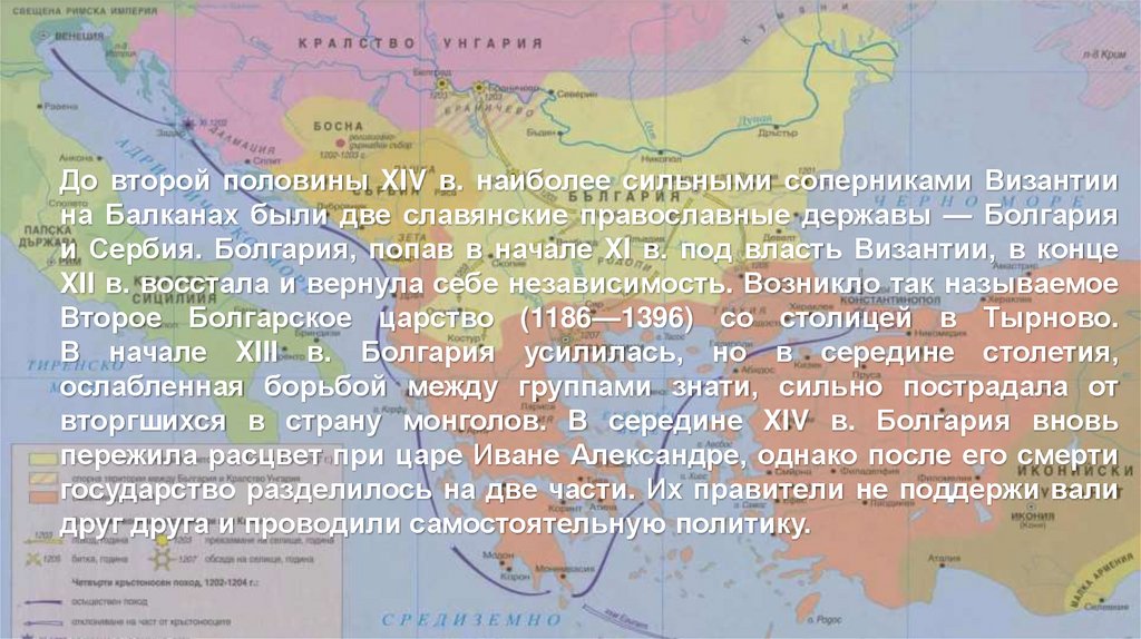 До второй половины XIV в. наиболее сильными соперниками Византиина Балканах были две славянские православные державы — Болгария