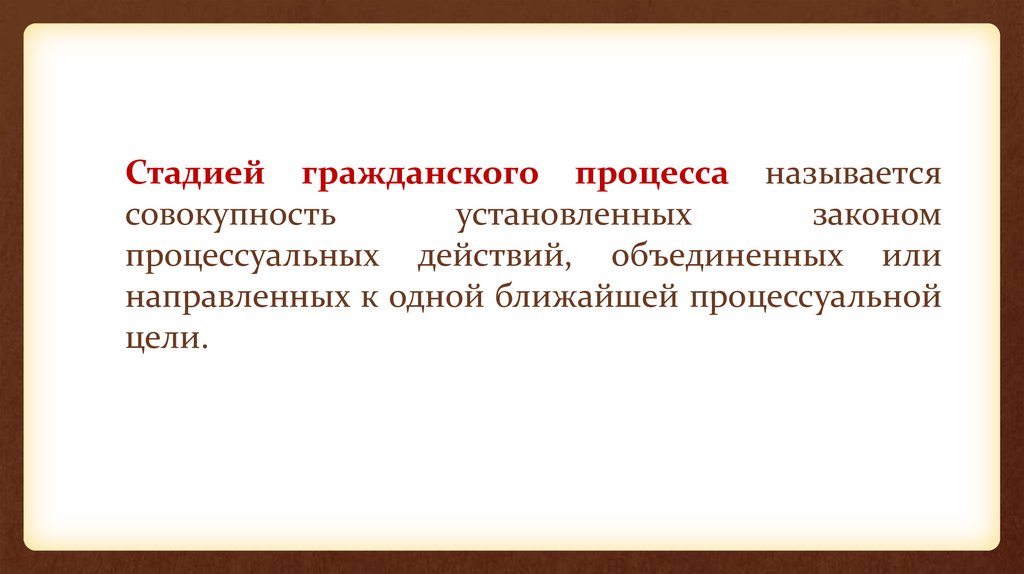 Стадией гражданского процесса называетсясовокупность