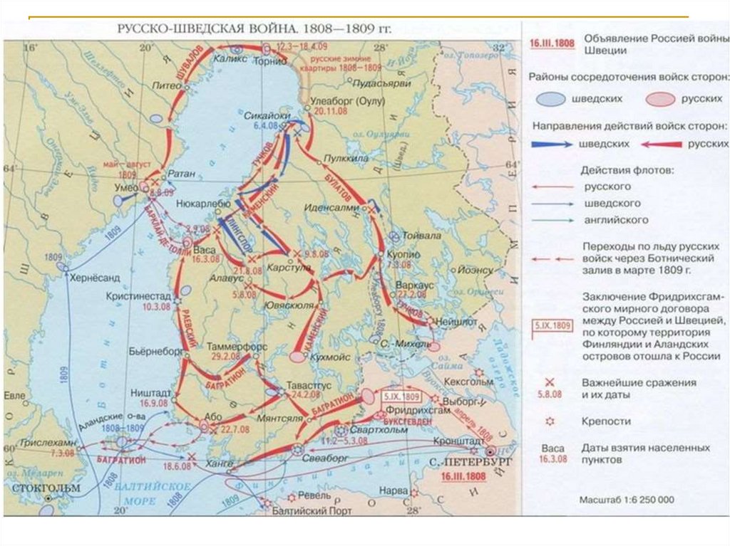 5 сентября 1809 г. - Фридрихсгамский мирный: Россиипередавалась вся территория Финляндии; Швеция присоединялась к