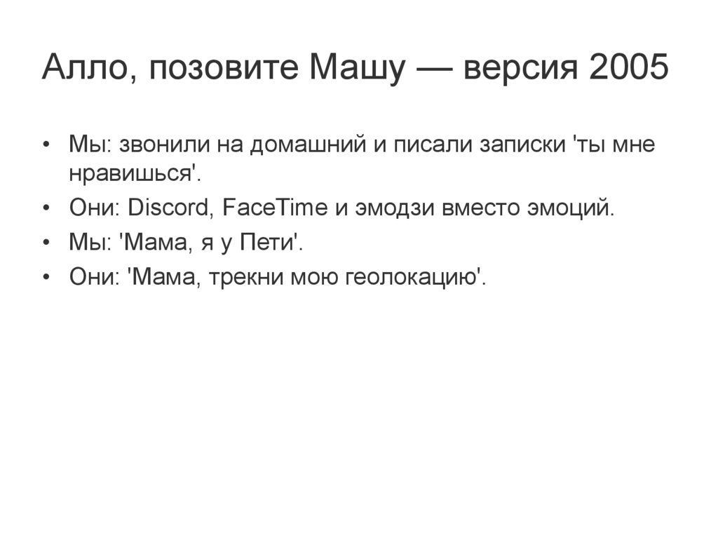 Алло, позовите Машу — версия 2005• Мы: звонили на домашний и писали записки 'ты мне