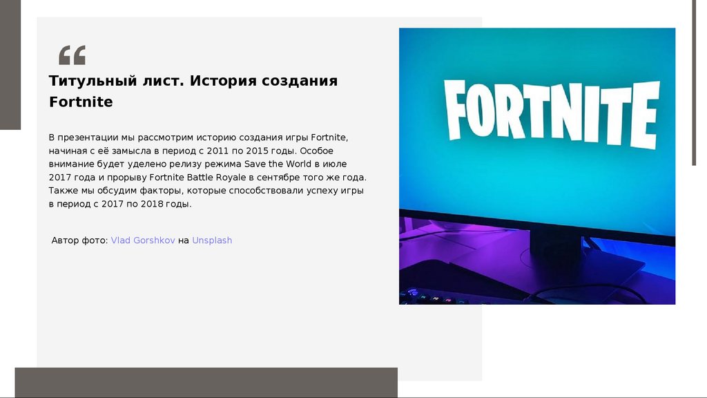 В презентации мы рассмотрим историю создания игры Fortnite,