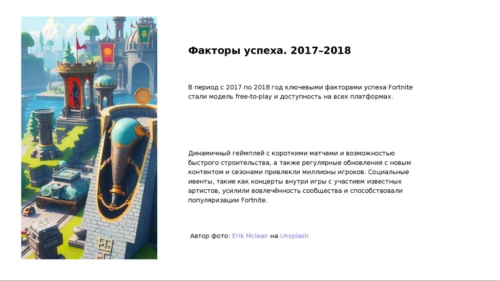 Факторы успеха. 2017–2018В период с 2017 по 2018 год ключевыми факторами успеха Fortnite