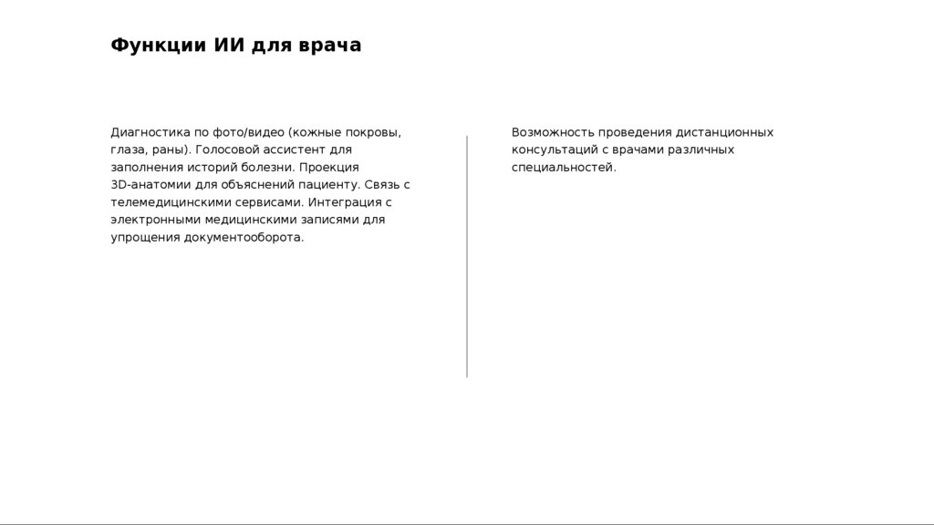 Функции ИИ для врачаДиагностика по фото/видео (кожные покровы,
