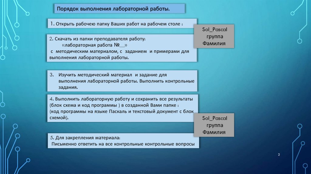 Порядок выполнения лабораторной работы.1. Открыть рабочею папку Ваших работ на рабочем столе :
