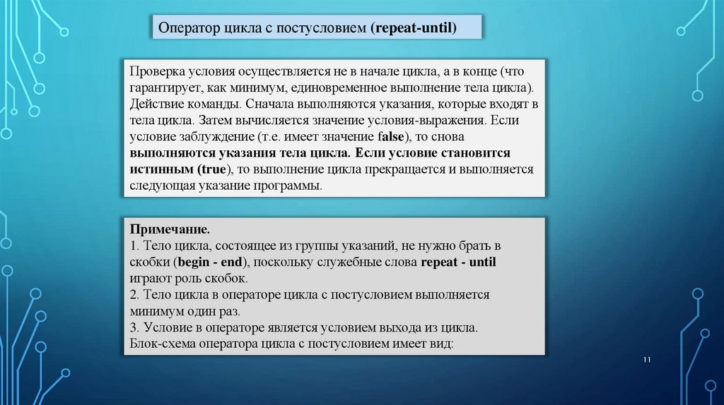21. Если условие в операторе цикла repeat-until принимает значение true,