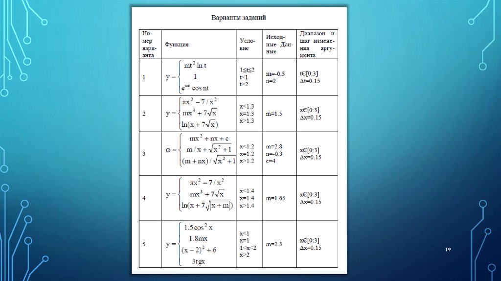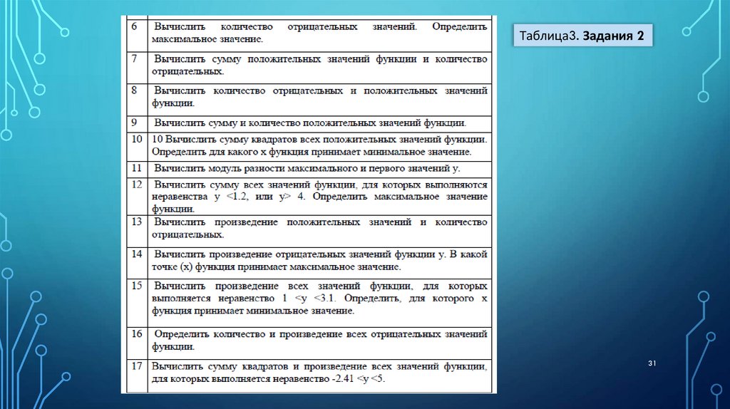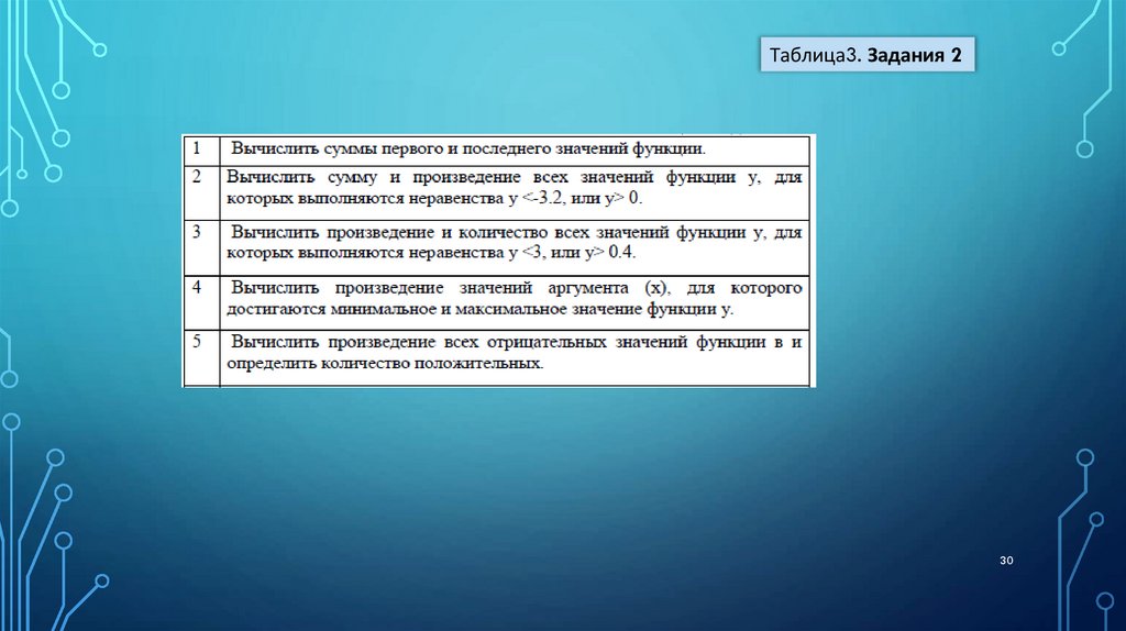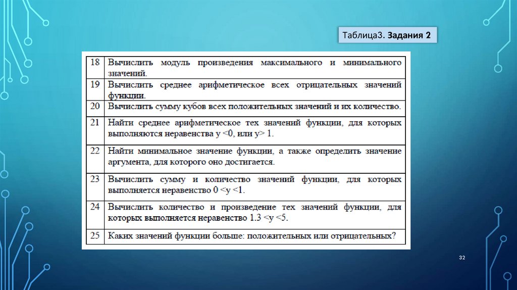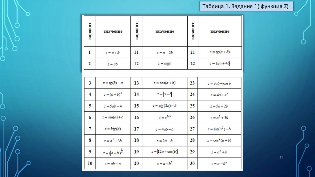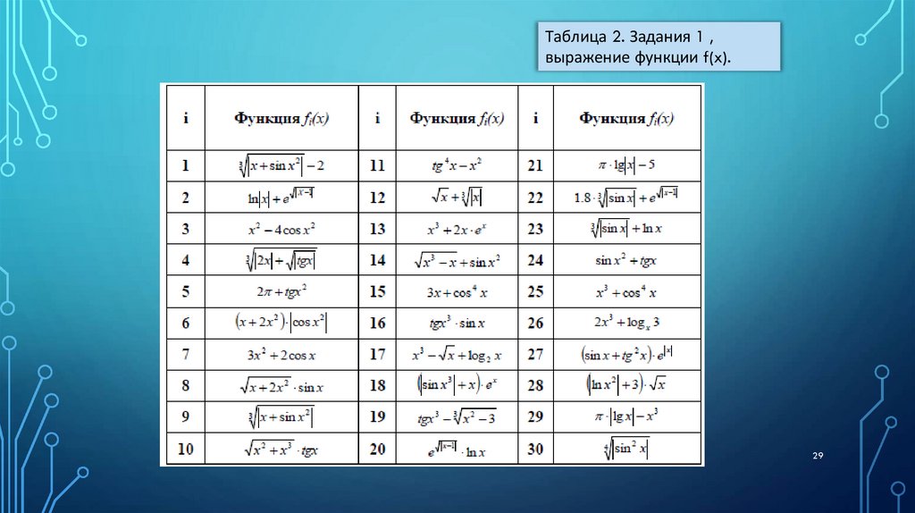 Таблица 2. Задания 1 ,выражение функции f(x).