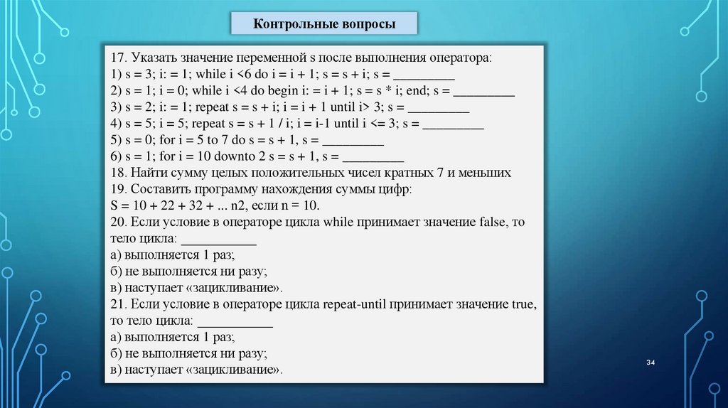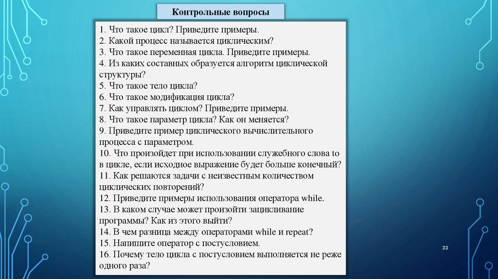Контрольные вопросы1. Что такое цикл? Приведите примеры.