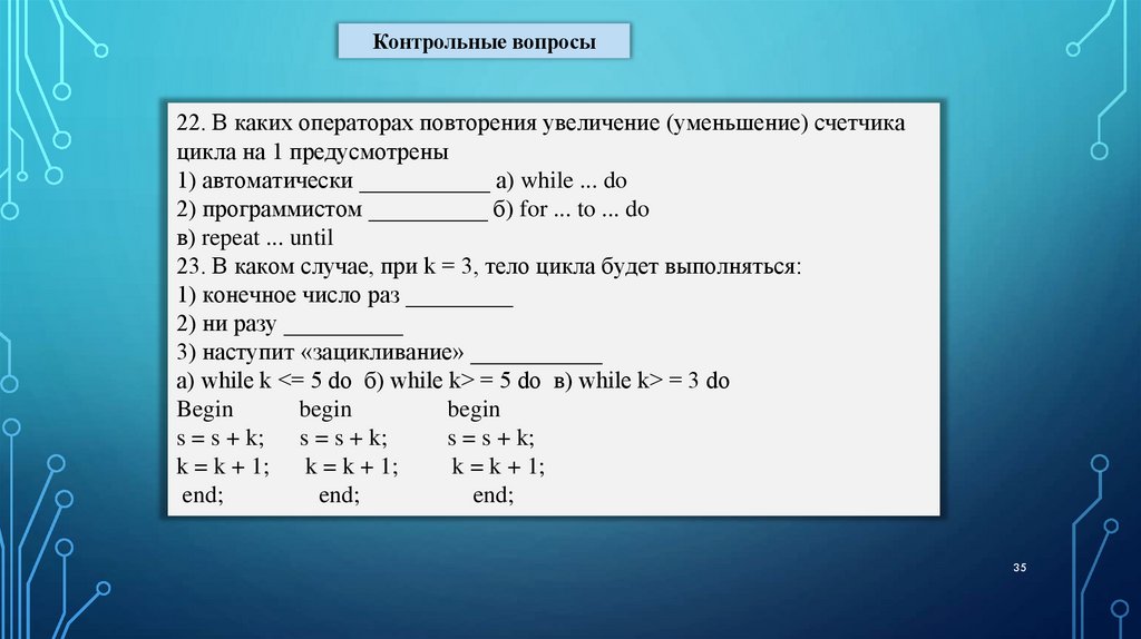 Контрольные вопросы22. В каких операторах повторения увеличение (уменьшение) счетчика