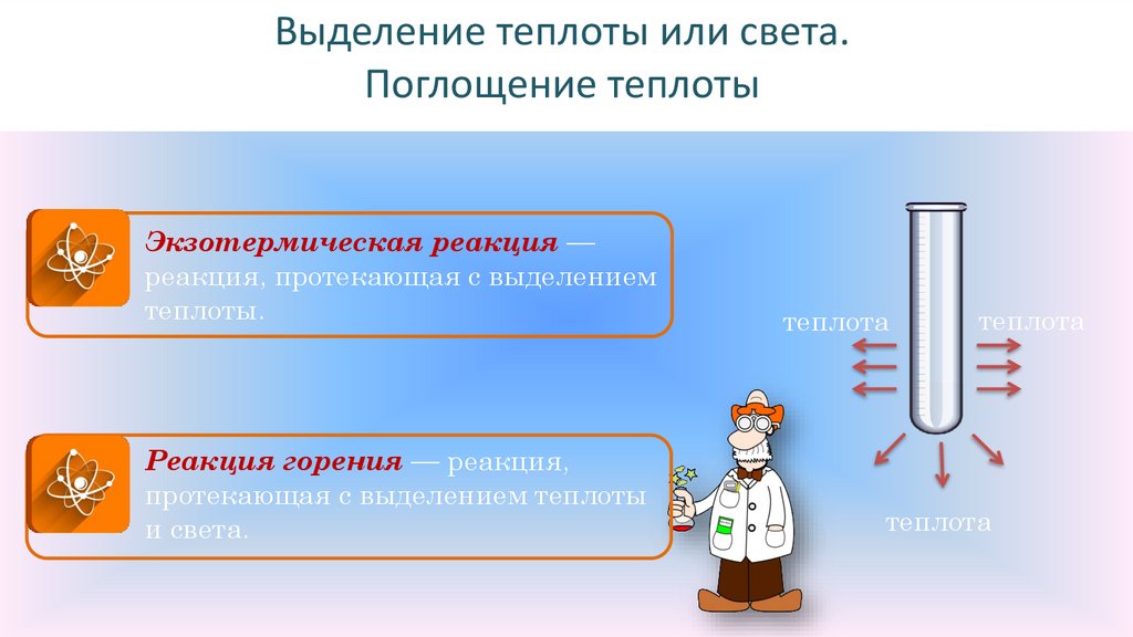 Выделение теплоты или света.Поглощение теплоты
