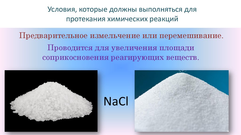 соприкосновения реагирующих веществ.