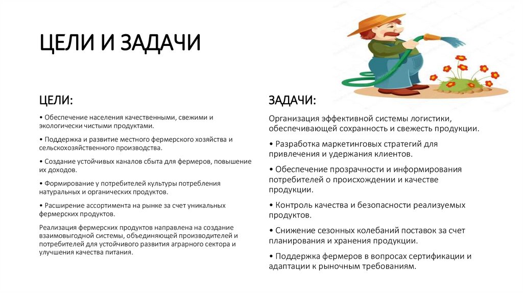 • Поддержка и развитие местного фермерского хозяйства и