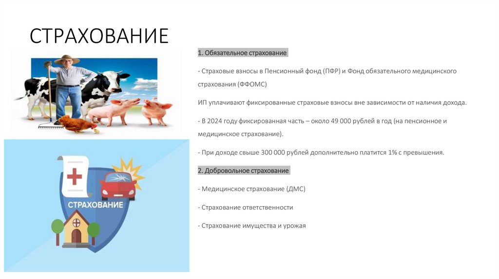 - Страхование имущества и урожая