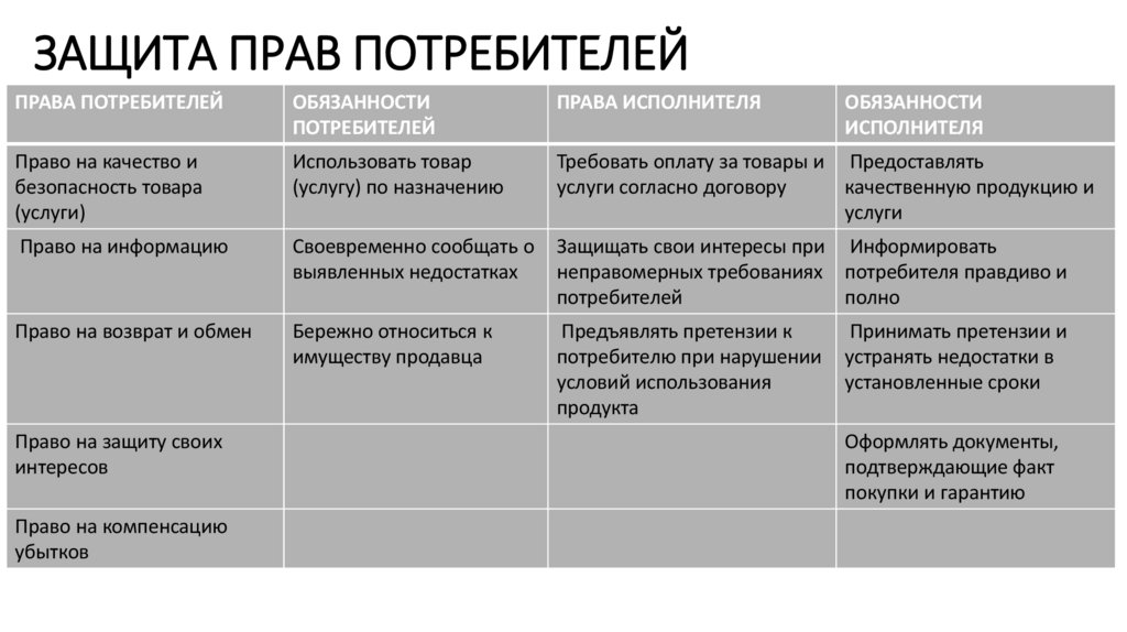 ЗАЩИТА ПРАВ ПОТРЕБИТЕЛЕЙПРАВА ПОТРЕБИТЕЛЕЙ