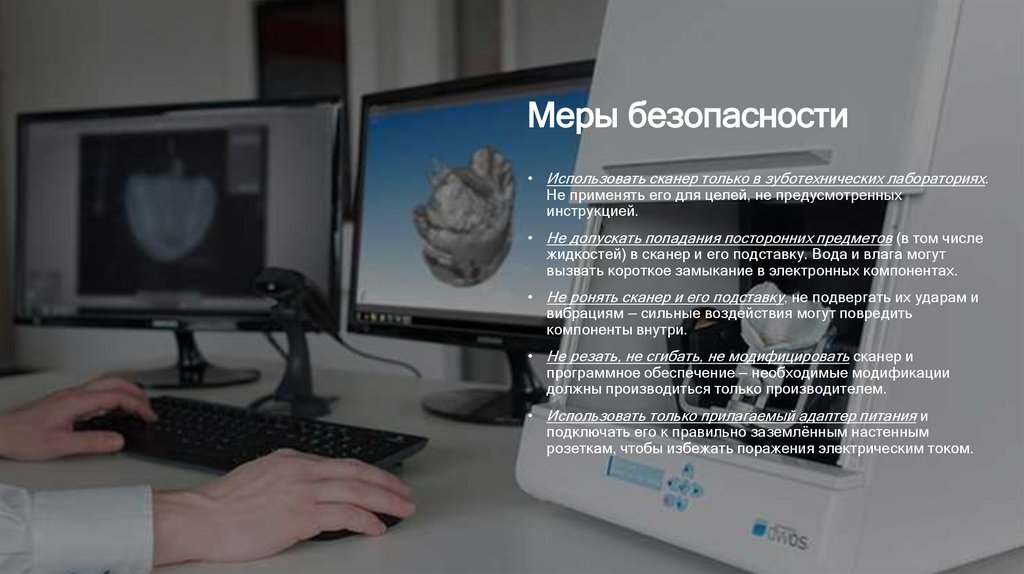 Меры безопасности• Использовать сканер только в зуботехнических лабораториях.