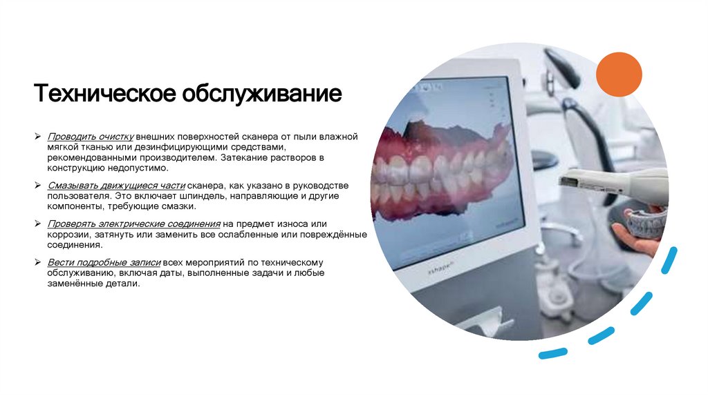 Уход за оборудованием (сканерами) в зуботехническом моделировании включает меры безопасности,техническое обслуживание и калибровку. Важно следовать рекомендациям производителя и проводить