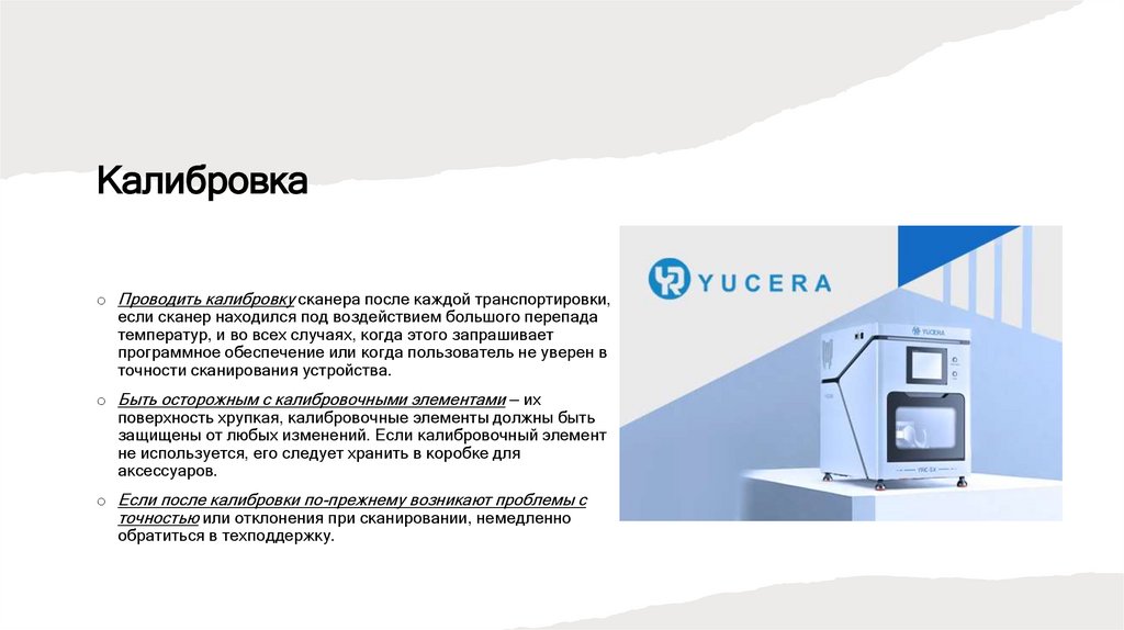 Калибровкаo Проводить калибровку сканера после каждой транспортировки,