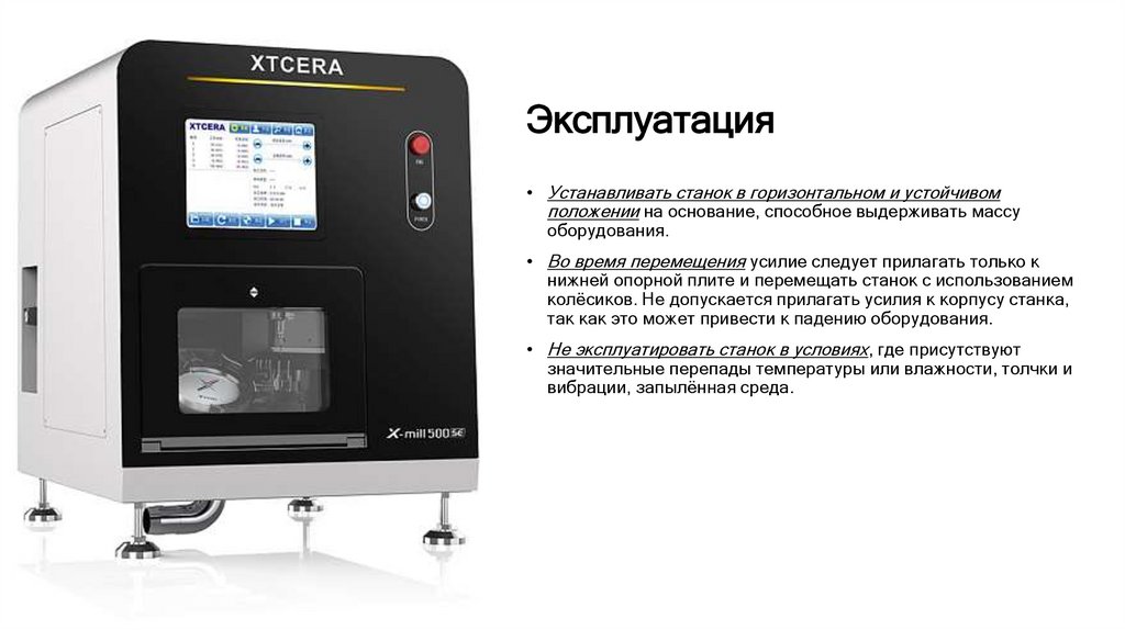 Эксплуатация• Устанавливать станок в горизонтальном и устойчивом