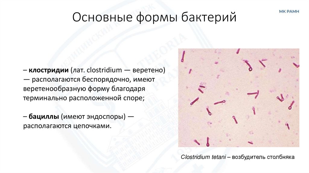 Основные формы бактерий– клостридии (лат. clostridium — веретено)