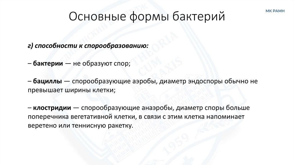 – бациллы — спорообразующие аэробы, диаметр эндоспоры обычно не