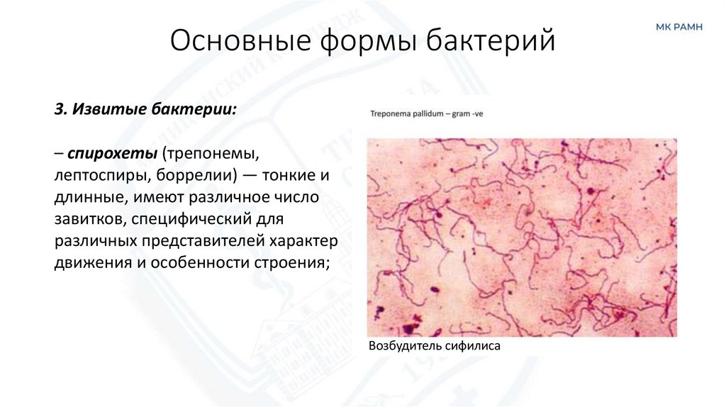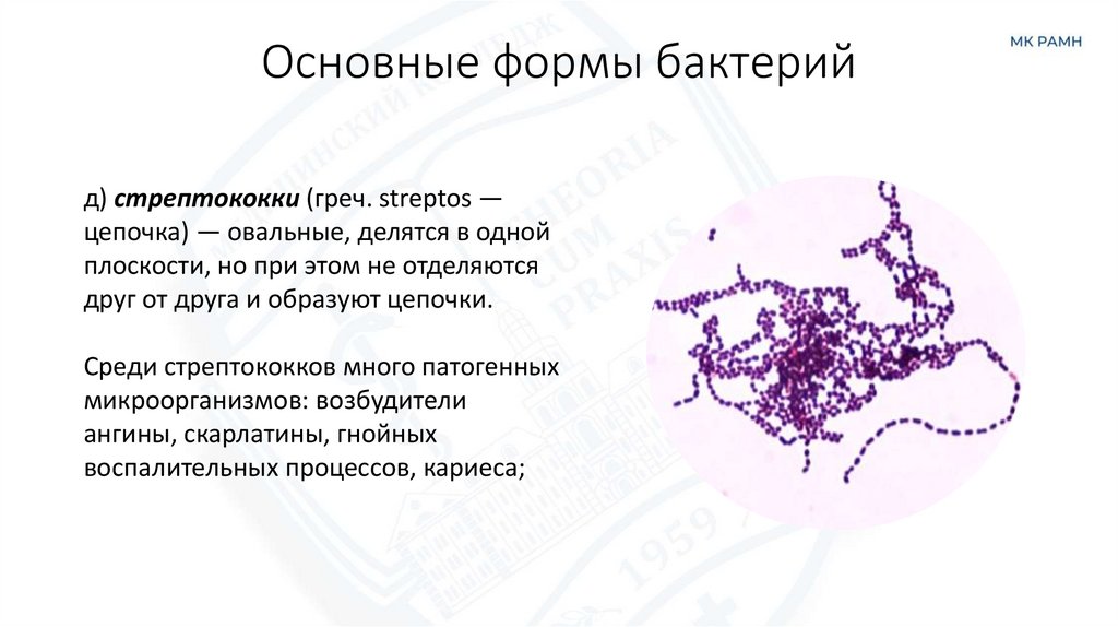 Основные формы бактерийд) стрептококки (греч. streptos —