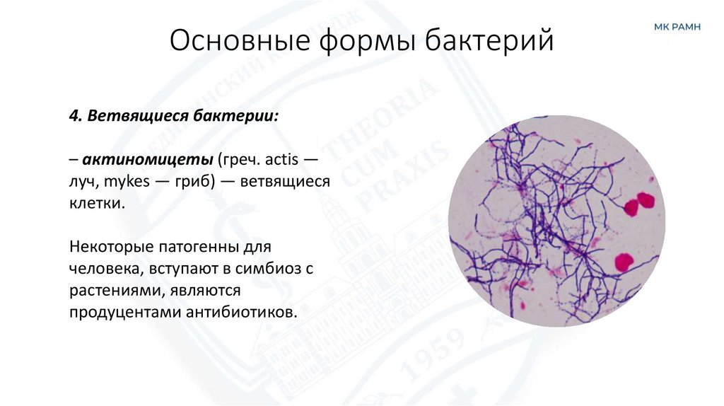 Основные формы бактерий4. Ветвящиеся бактерии: