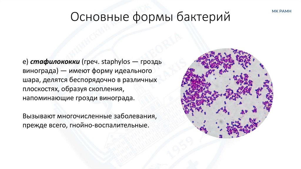 Основные формы бактерийе) стафилококки (греч. staphylos — гроздь
