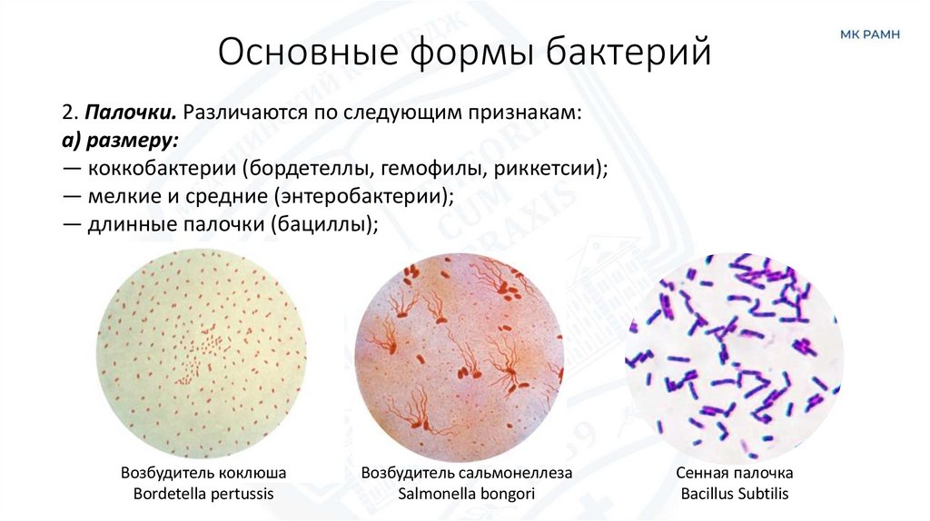 Основные формы бактерий2. Палочки. Различаются по следующим признакам: