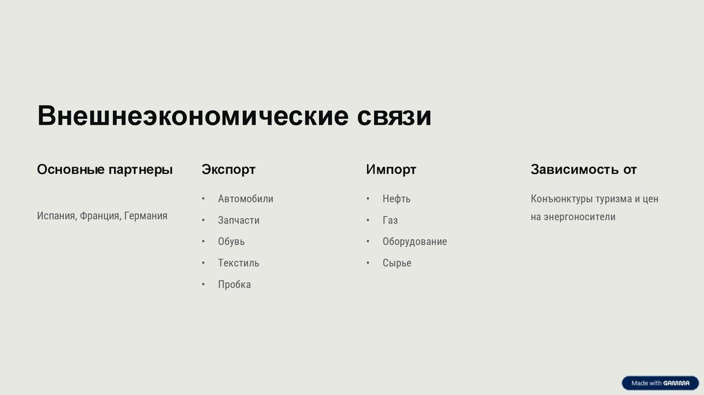 Внешнеэкономические связиОсновные партнеры